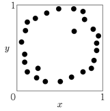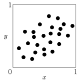 자료 (xi, yi)(i = 1,2,…,n)에 단순선형회귀모형 yi = β0+β1xi + εi를 적합하여 분석하고자 한다. 다음 산점도 중 단순선형회귀모형의 결정계수가 가장 큰 것은?
