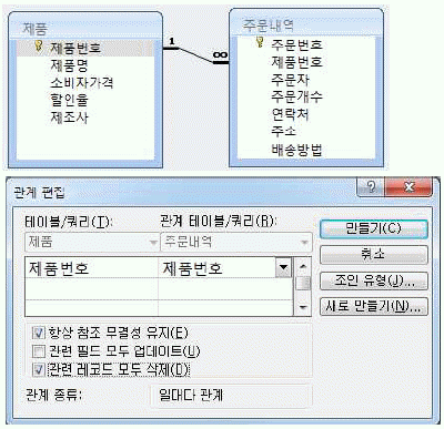 아래 그림과 같이 <주문내역> 테이블과 <제품> 테이블의 관계가 설정되어 있다. 다음 중 <제품> 테이블의 특정 레코드를 삭제하였을 경우에 대한 설명으로 옳은 것은?