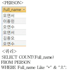 다음 중 아래 <PERSON> 테이블에 대한 쿼리의 실행 결과 값은?