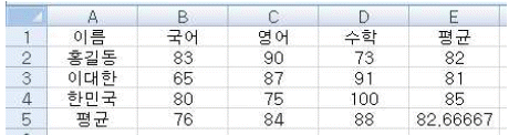 다음 중 아래 시트에서 각 수식을 실행했을 때의 결과 값으로 옳은 것은?