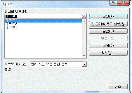 매크로 이름 상자에서는 매크로의 이름을 선택하여 변경할 수 있다.