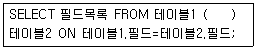 다음 중 아래 쿼리에서 두 테이블에 조인된 필드가 일치하는 레코드만 결합하기 위해 괄호 안에 넣어야 할 조인 유형으로 옳은 것은?