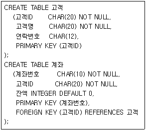다음 중 아래 SQL문으로 생성된 테이블에서의 레코드 작업에 대한 설명으로 옳지 않은 것은? (단, 고객과 계좌 간의 관계는 1:M이다.)