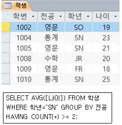다음 중 아래 <학생> 테이블에 대한 SQL문의 실행 결과로 옳은 것은?