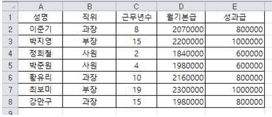 다음 중 아래의 시트에서 주어진 표 전체만 선택하는 방법으로 옳지 않은 것은?