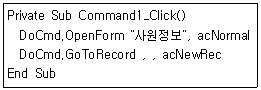 다음 중 아래의 이벤트 프로시저에서 [Command1] 단추를 클릭했을 때의 실행 결과로 옳은 것은?