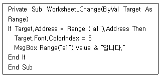 다음 중 아래의 VBA 코드에 대한 설명으로 옳지 않은 것은?