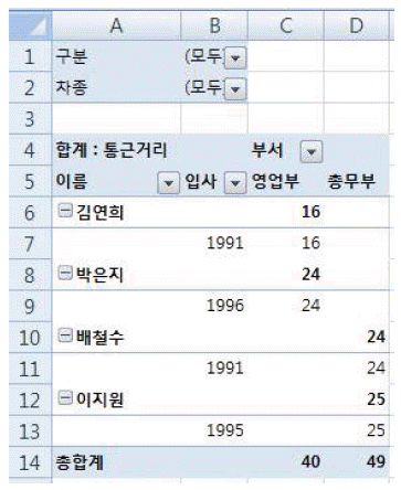 다음 중 아래의 피벗 테이블에 대한 설명으로 옳지 않은 것은?