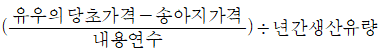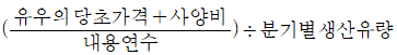 다음 중 우유 1kg당 젖소의 상각비를 바르게 표시한 것은?