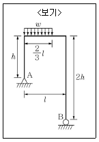 <보기>와 같은 정정라멘구조에 분포하중 W가 작용할 때 최대 모멘트 크기는?