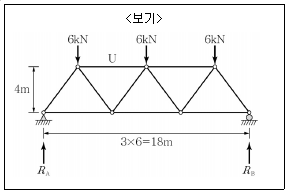 <보기>와 같은 트러스에서 단면법으로 구한 U의 부재력의 크기는?