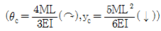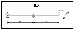 <보기>와 같이 모멘트하중을 받는 내민보가 있을 때 C점의 처짐각 θc와 처짐 yc는? (단, EI는 일정하다.)