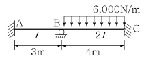 그림과 같은 보의 A지점에서 발생하는 반력모멘트 MA는? (단, 탄성계수 E는 모든 부재에서 동일하며 AB 및 BC 부재의 단면2차모멘트는 각각 I 와 2I 이다.)