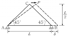 그림과 같이 수평하중을 받는 트러스 구조물의 B점에서 발생하는 최대 수평변위 δmax=3δ일 때, 허용 가능한 최대 수평하중(P)은? (단, 모든 부재의 단면적 A와 탄성계수 E는 동일하다.)