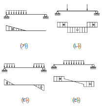 다음 중 단순보에 하중이 작용할 때의 전단력도를 옳게 나타낸 것은?