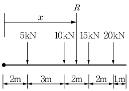 그림과 같은 하중계에서 합력 R의 위치 x를 구한 값은?