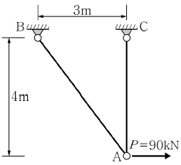 다음과 같은 트러스에 A점에서 수평으로 90kN의 힘이 작용할 때 A점의 수평변위는? (단, 부재의 탄성계수 E=2×105MPa, 단면적 A=500mm2이다.)