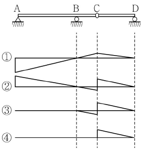 다음과 같이 내부힌지가 있는 보에서 C점의 전단력의 영향선은?