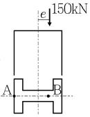 그림과 같은 기둥에 150kN의 축력이 B점에 편심으로 작용할 때 A점의 응력이 0이 되려면 편심 e는? (단면적 A=125mm2, 단면계수 Z=2500㎣이다.)