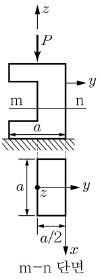 <보기>와 같은 정사각형 단면을 갖는 짧은 기둥의 측면에 홈이 패어 있을 때 작용하는 하중 P로 인해 단면 m-n에 발생하는 최대압축응력은?
