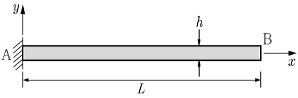 <보기>와 같은 높이가 h인 캔틸레버보에 열을 가하여 윗부분과 아랫부분의 온도 차이가 △T가 되었을 때, 보의 끝점 B에서의 처짐은?