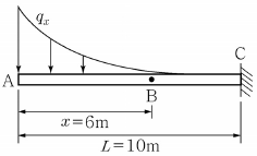 <보기>와 같은 길이가 10m인 캔틸레버보에 분포하중 qx=50-10x+x2/2 이 작용하고 있을 때 지점 A에서부터 6m 떨어진 지점 B에서의 전단력 VB의 크기로 가장 옳은 것은?