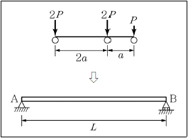 <보기>와 같이 단순보 위를 이동 하중이 통과할 때, A점으로부터 절대 최대 모멘트가 발생하는 위치는?