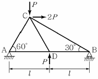 <보기>와 같은 평면 트러스에서 B점에서의 반력의 크기와 방향은? (단, √3=1.7로 계산한다.)