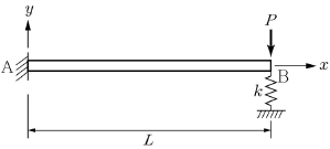 <보기>와 같이 캔틸레버보 AB에서 끝점 B는 강성이 k=9EI/L3인 스프링으로 지지되어 있다. B점에 하중 P가 작용할 때, B점에서 처짐의 크기는? (단, 보의 휨강성도 EI는 전 길이에 걸쳐 일정하다.)