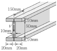 그림과 같이 100N의 전단강도를 갖는 못(nail)이 웨브(web)와 플랜지(flange)를 연결하고 있다. 이 못들은 부재의 길이방향으로 150mm 간격으로 설치되어 있다. 이 부재에 작용할 수 있는 최대수직전단력은? (단, 단면2차모멘트 I=1,012,500mm4)