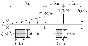 사각형 단면으로 설계된 보가 분포하중과 집중하중을 받고 있다. 그림과 같이 단면의 높이는 같으나 단면 폭은 구간 AB가 구간 BC에 비해 1.5배 크다. 이 경우 구간 AB와 구간 BC에서 발생하는 최대휨응력의 비( )는?