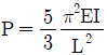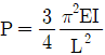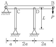 그림의 수평부재 AB의 A지점은 힌지로 지지되고 B점에는 집중 하중 P가 작용하고 있다. C점과 D점에서는 끝단이 힌지로 지지된 길이가 L이고 휨강성이 모두 EI로 일정한 기둥으로 지지되고 있다. 두 기둥 모두 좌굴에 의해서 붕괴되는 하중 P의 크기는? (단, AB부재는 강체이다.)