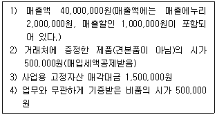다음은 일반과세자인 사업자 甲의 2016년 제1기 과세기간(1. 1. ~ 6. 30.)에 대한 거래내역이다. 부가가치세 과세표준은 얼마인가? (단, 아래에서 제시한 금액은 부가가치세를 포함하지 않음)