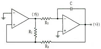 다음 비정현파 발진회로의 (가)와 (나)에서의 출력을 바르게 나타낸 것은?