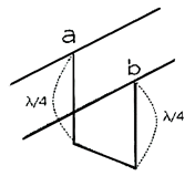 그림과 같이 도선의 길이가 λ/4인 선단을 단락할 경우 ab점 에서 본 임피던스는?