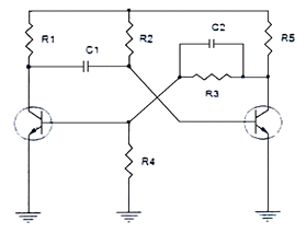 다음 그림과 같은 단안정 멀티바이브레이터 회로에서 콘덴서 C2의 역할은 무엇인가?