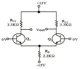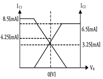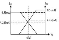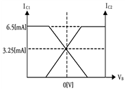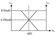 다음 차동증폭 회로에서 주어진 전압 및 전류 조건에 맞는 직류 IV-곡선으로 맞는 것은? (단, IRC1=IRC2=3.25[mA], VE=0.7[V]이다)