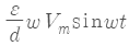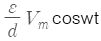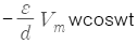 간격이 d인 두 개의 평행 전극판 사이에 유전율 ε의 유전체가 있을 때, 전극 사이에 전압 Vmcosωt를 가한 경우의 변위 전류밀도는?
