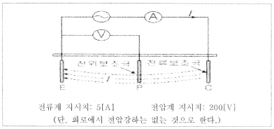 전위강하법으로 접지저항을 다음과 같이 측정되었을 때 접지저항은 몇 [Ω] 인가?