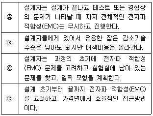 전자파 적합성(EMC)을 고려한 기기설계에는 두 가지 접근 방법이 있다. 하나는 응급(Crisi) 접근법이고 다른 하나는 시스템(System) 접근법이다. 다음 중 시스템 접근법에 해당되는 것만 고르시오.