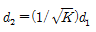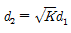 등가지구 반경계수가 K일 때 송수신 안테나간의 기하학적 가시거리(d1)와 전파 가시거리(d2)의 관계를 바르게 나타낸 것은?
