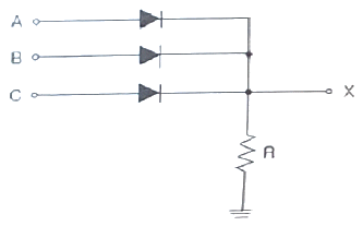 다음 회로에서 A, B, C를 입력, X를 출력이라고 하면 회로는 어떤 논리 게이트인가? (단, 정논리 회로이다.)