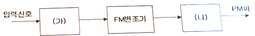 아래 그림과 같이 FM 변조기를 이용하여 PM 변조를 하고자 한다. 괄호에 들어갈 내용으로 적합한 것을 고르시오.