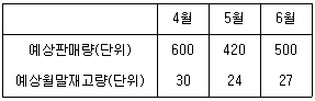 (주)한국이 5월에 생산해야 할 제품 A의 수량은?