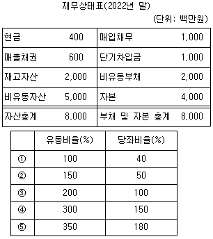 (주)경영의 재무상태표가 다음과 같을 때, 유동비율과 당좌비율은?