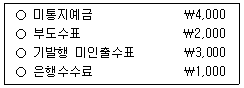 (주)한국의 20×1년 말 당좌예금계정 잔액은 ₩21,000이었으나 은행예금증명서상의 당좌예금 잔액은 ₩25,000으로 서로 불일치하였다. (주)한국의 20×1년 말 정확한 당좌예금 잔액은?