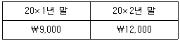 (주)한국은 20×1년 1월 1일 토지를 ₩10,000에 구입하고, 매년 재평가모형을 적용하고 있다. 이 토지의 공정가치는 다음과 같다.