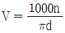 연삭숫돌 바퀴의 회전수 n[rpm], 숫돌 바깥지름 d[mm]라 하면, 원주속도 v[m/min]를 구하는 식으로 옳은 것은?