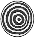 라이크로미터 스핀들 측정면 평면도 측정시 광선정반(optical flat)에 그림과 같은 형상의 무늬가 5개일 때에 사용 광선의 파장이 0.6μm이면 중심부와 원 모서리의 높이차는 몇 μm인가?