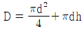 드로잉 작업에서 블랭크의 지름 D, 성형품의 지름 d, 성형품의 높이 h, 밑 바닥부의 구석 r은 없는 것으로 표시할 때 블랭크지름 D 을 구하는 식으로 옳은 것은?